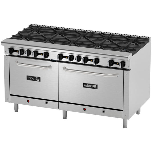 ESTUFA ASBER COMPLETA AER-2-B10-60 | Estufa | 10 Quemadores | Parrilla Horno Doble | Gas | Acero Inoxidable | Restaurante Comedor Industrial Hotel