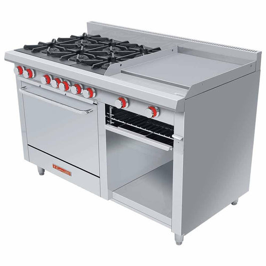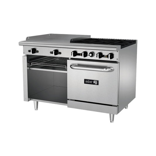ESTUFA ASBER MULTIPLE AEMR-G24-B4-48-H | Estufa | 4 Quemadores | Plancha 24" | Horno 24" | Parrilla | Gas | Acero Inoxidable | Restaurante Comedor Industrial Hotel